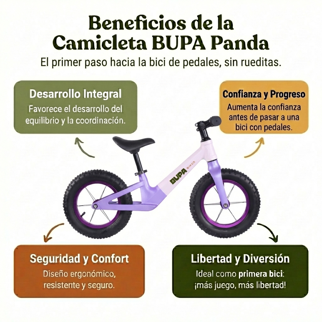 La BUPA PANDA está diseñada para que niñas y niños de 2 a 5 años desarrollen equilibrio y coordinación de forma natural, antes de pasar a una bici con pedales.